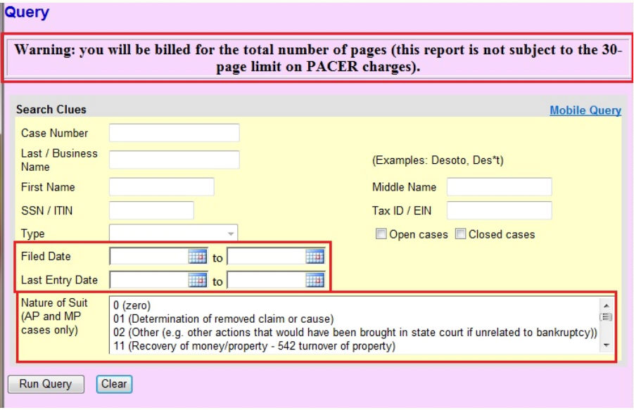 Query allows you to view a variety of information about a case, such as a list of attorneys or current status, as well as the docket sheet. After identifying the case you want, you will see a menu of choices, noted below.
